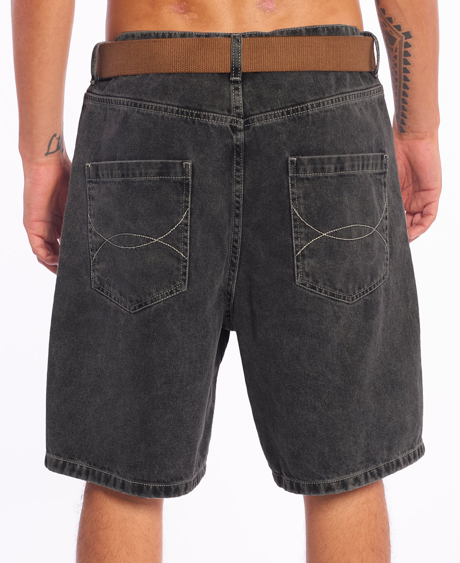 Bermuda Independent Span Pants.DENIM 10 8oz BLACK. 100% ALGODON. BAGGY FIT 22”. Etiqueta de marca/talle. Stone wash. 5 bolsillos. Costuras a contratono. Cordón marcario. Presillas de 2 cm. Botón metálico marcario. Grifa de marca. Bordado en bolsillo relojero. Alegoria en bolsillos de espalda.