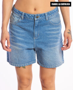 Bermuda Isabel La Católica Boy mid rise. Straight fit. Lavado localizado con bigote. Denim 100% algodón.