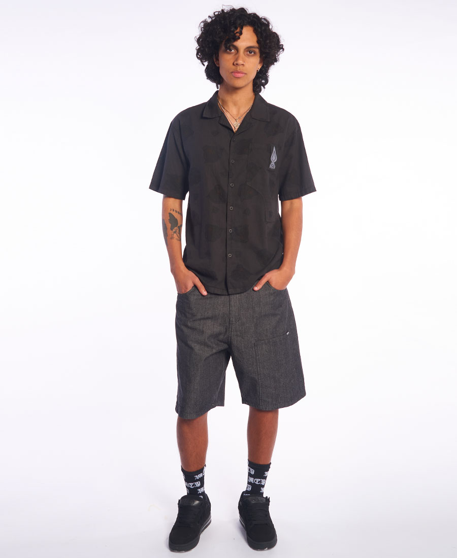 Bermuda MCD Crudo. Loose 21″. Denim mega black 9OZ