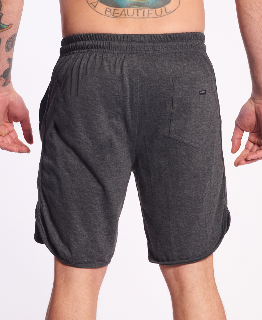 Bermuda jogger Rip Curl. Easy fit. Largo lateral 18” (45 cm). Cintura elastizada. Detalle de costuras envivadas. Cordon personalizado. Multietiquetas bordadas. 25% poliester 75% algodon.JERSEY ALGODON POLI MELANGE.