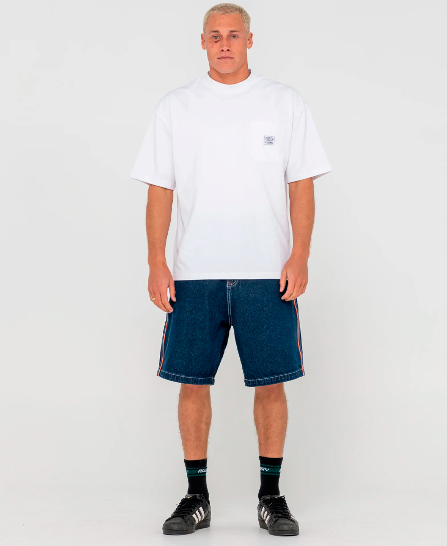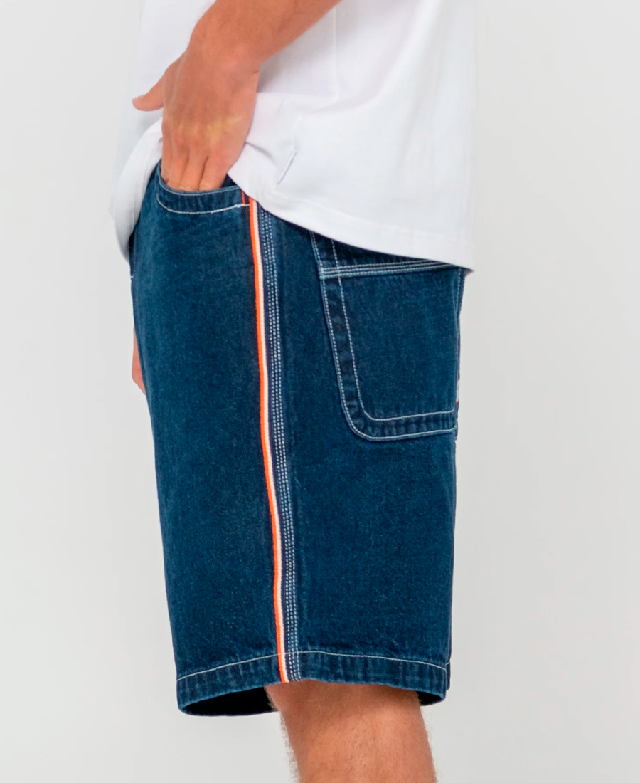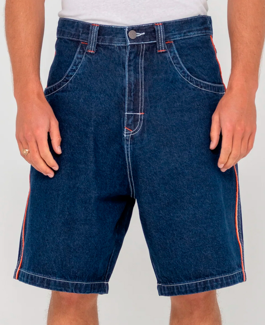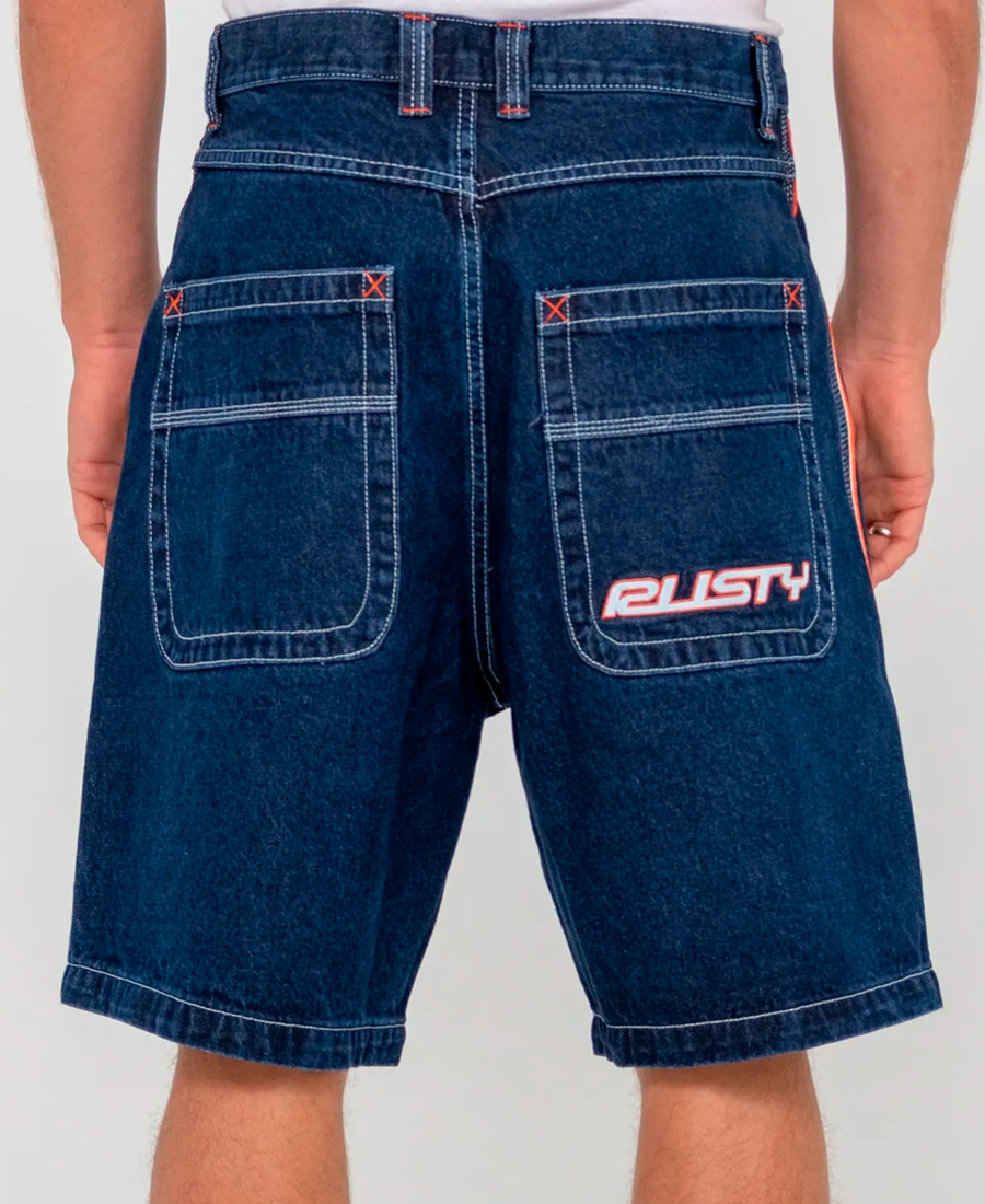 Bermuda Rusty Flip Daddy 2. Corte holgado 22″. Costuras exteriores con bordado oxidado (cintura fija). Material 100 % algodón. Bolsillos extragrandes.