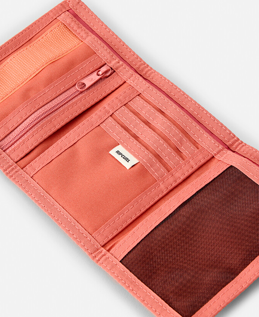 • Múltiples ranuras para tarjetas, una ventana para identificación y un compartimento para monedas que mantienen todo organizado.