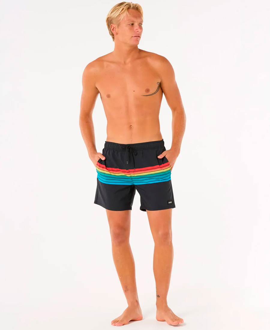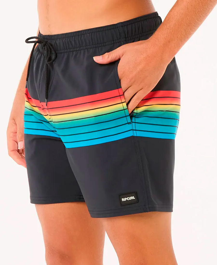Boardshort Rip Curl Surf Revival 16″.MIRAGE CORE RECYCLED FABRIC. VOLLEY FIT. DWR Water Repelent Treatment. 16 Pulgadas (40 64 cm). Etiqueta tejida. Bolsillo Trasero con velcro. Sublimado Rayado localizado. Secado rápido. Poliéster reciclado. Fuente sustentable.