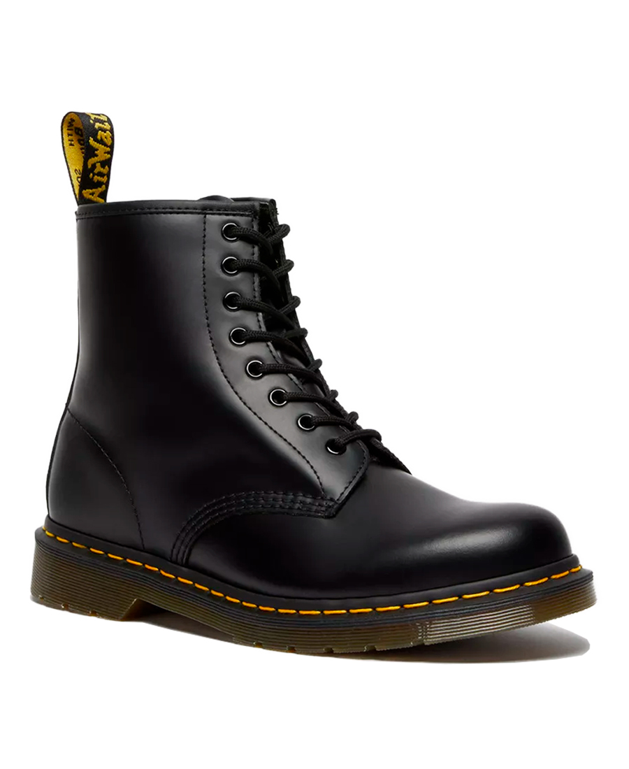 BorcegosDr Martens 1460. La bota 1460 de 8 ojales es nuestra bota Dr. Martens Original. Nacida el 1 de abril de 1960 y de ahí su nombre se reconoce al instante gracias al característico pespunte amarillo la suela acanalada y el tirador de talón. Por su comodidad y durabilidad esta bota fue inicialmente la preferida de los trabajadores esenciales cuyas tareas implicaban largas horas de pie. Hoy es un pilar para músicos y pioneros de la moda de todo el mundo que han llevado la bota de la calle al centro del escenario. A todas partes. La puntera ancha y redondeada y la suela con cámara de aire garantizan comodidad desde el alba hasta el acaso. Su piel Smooth se amolda a la forma de tu pie. Una bota única.