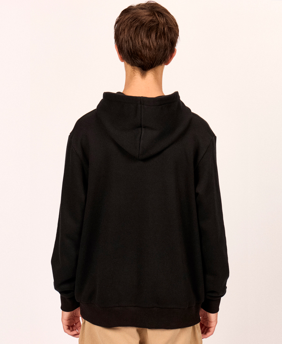 - Buzo básico con capucha y bolsillo, estilo canguro.