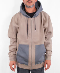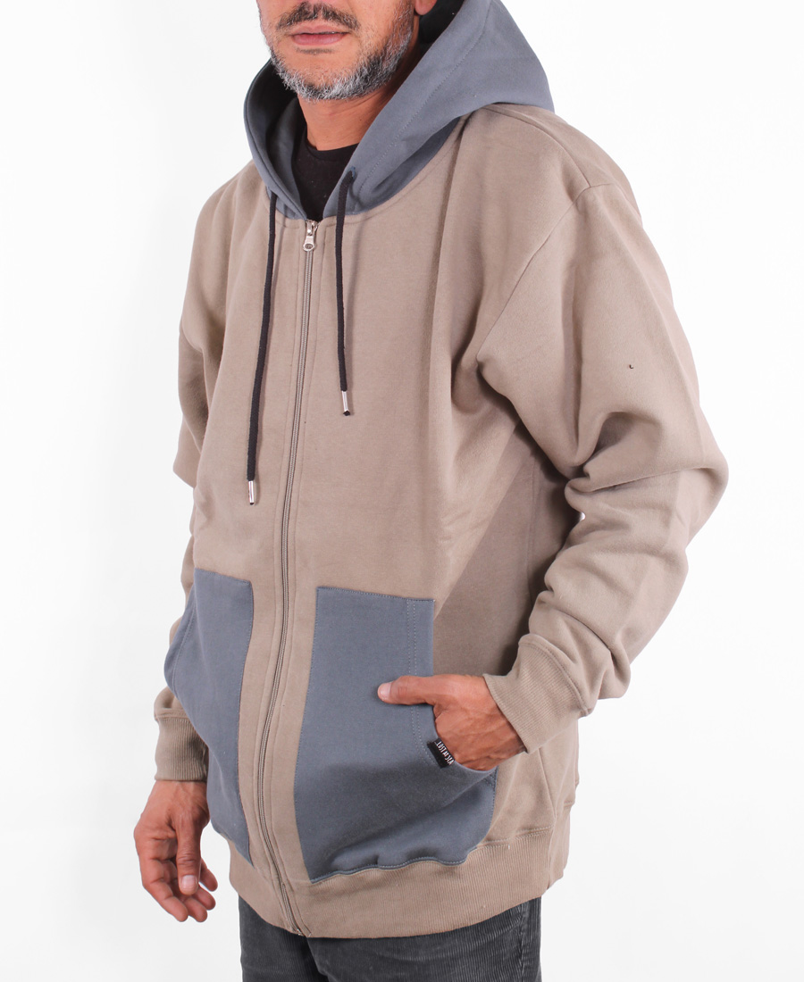 Buzo Lost Comb. Con cierre. De frisa 100% algodón. Boxy fit. Cordón de algodón. Ojales bordados. Bolsillos y capucha combinadas de corderoy. Etiqueta de termofusión en manga. Etiquetas marcarias.
