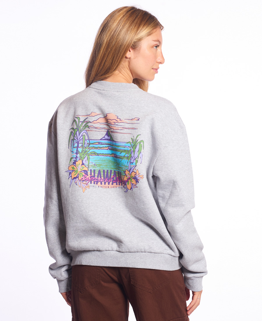 Buzo Rip Curl Light Destination.FRISA LIVIANA. Relaxed fit. Lavado STONE WASH. Limpieza de escote en cinta hilera. Estampa Frente + Espalda. Multietiquetas. 92% algodón 8% poliéster.