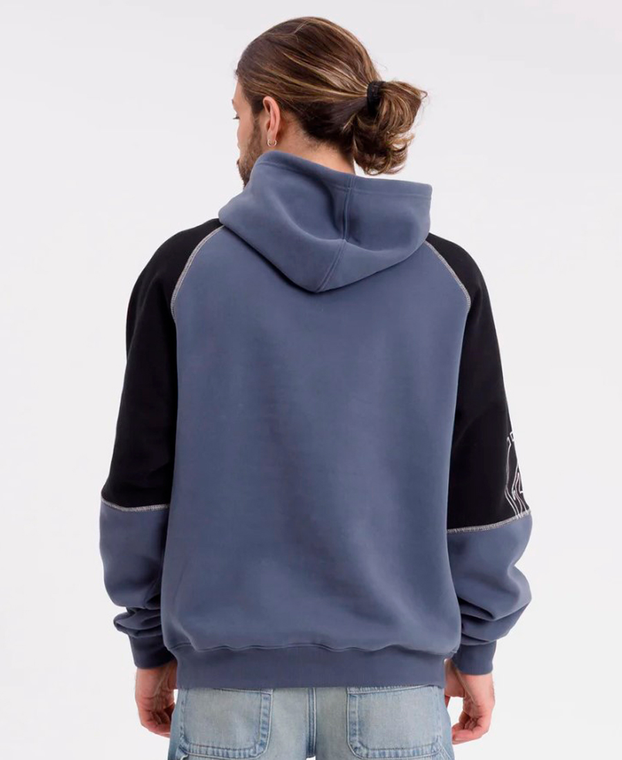 Un canguro que pide que lo uses sin explicar demasiado. El oversize fit cae suelto y cómodo, con ese volumen justo que queda bien tanto arriba de una remera como sobre los hombros un día de viento. La frisa invisible pesada abriga en serio sin que parezca que llevás un acolchado encima. Los recortes a contratono y las costuras ornamentales le suman textura y carácter al china blue. Para una tarde de skatepark, una juntada nocturna o simplemente salir sin pensar mucho el outfit.