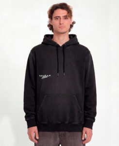 - Costuras expuestas al corte en manga, laterales, hombros, bolsillos y capucha