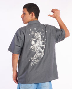 Camisa Santa Cruz Delfino Tarot 65% algodón 35% poliester gabardina espiga assorted con cierre metálico estampa en frente y espalda solapa de cuello ancho oversize fit etiquetas marcarias