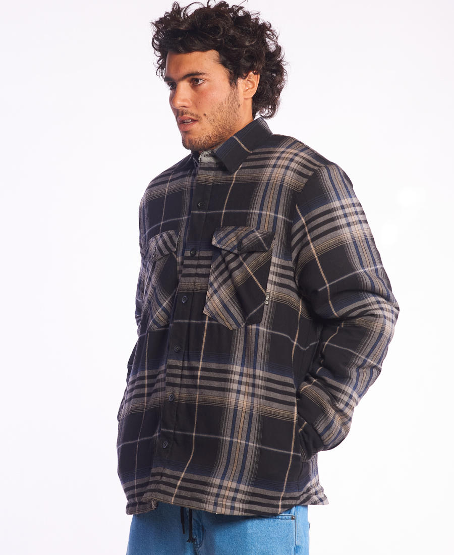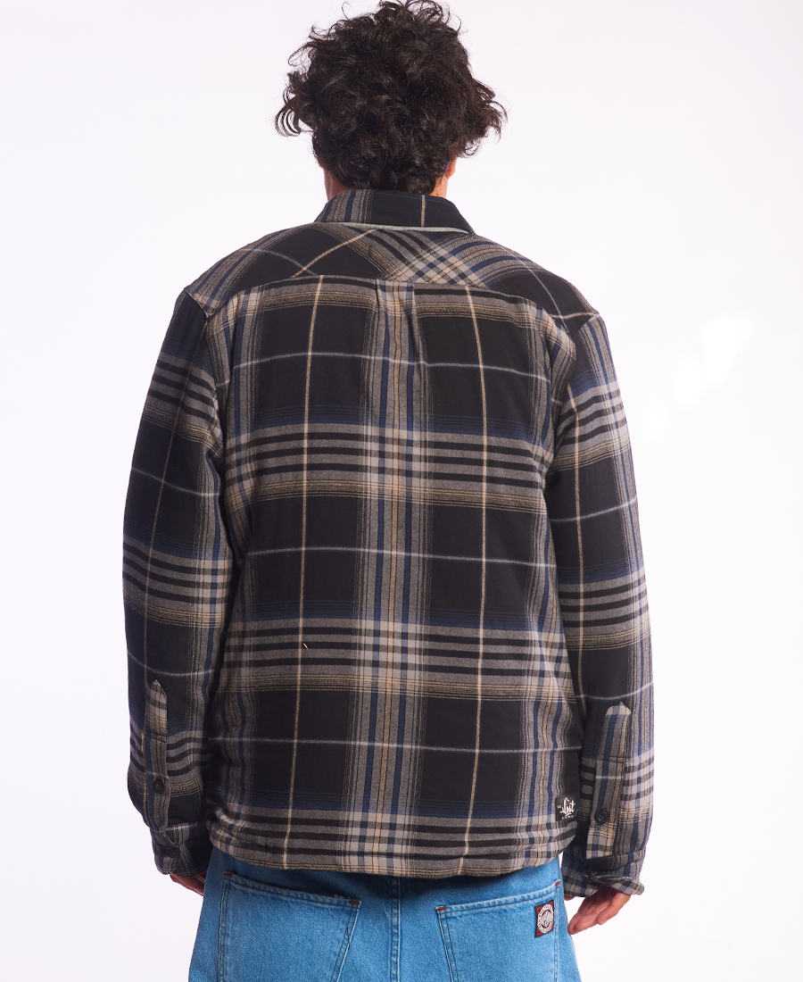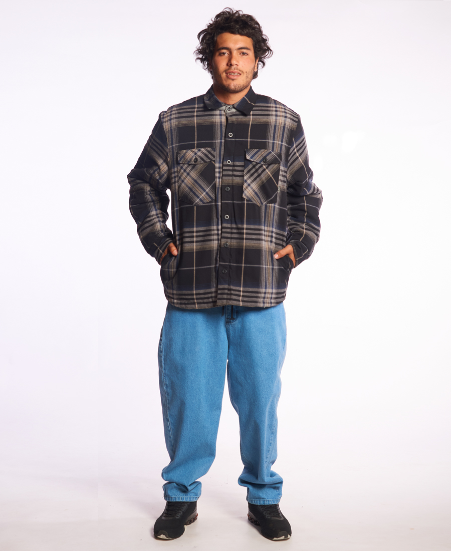 Camisaco Lost Shoter Viyela liviana 100% algodón interior de corderito mini ultra negro oversize fit botones a tono marcarios bolsillos plaque con tapa bolsillos ojal en laterales etiquetas marcarias.