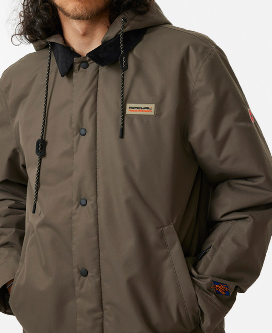 Campera Rip Curl Coaches. Poliester reciclado 10K/10K. Tratamiento repelente al agua DWR. Ajuste regular. Membrana impermeable 10k/10k. Detalle de puños de lycra. Insignia tejida. Forro de malla. Sellado. Bolsillo para antiparras. 2 capas.