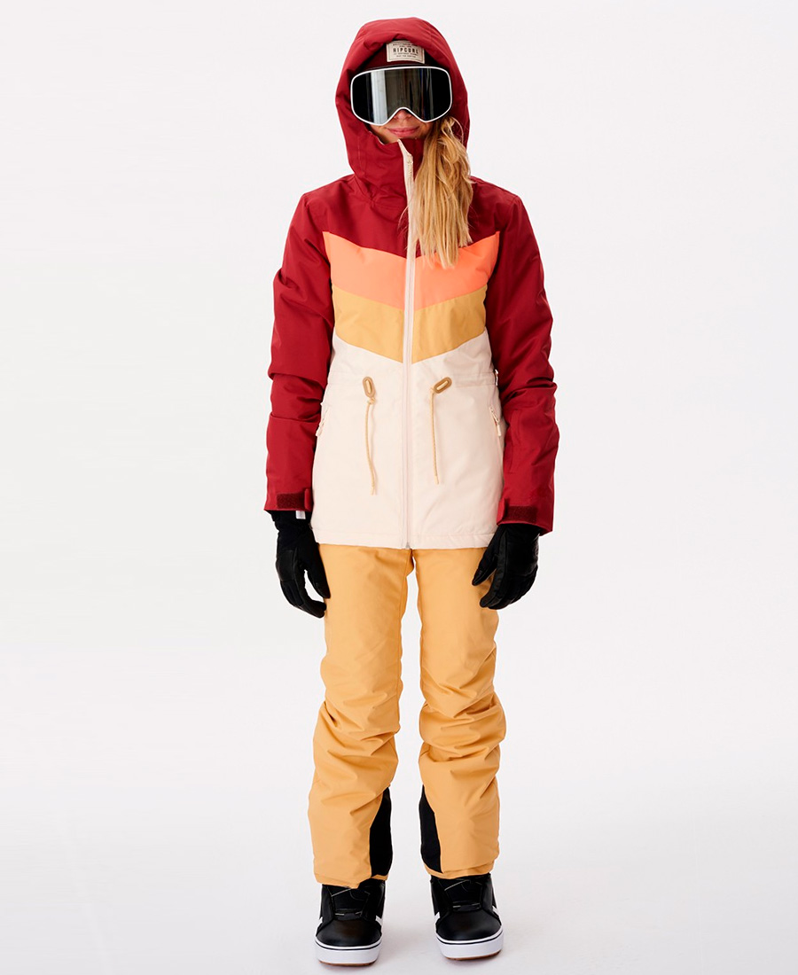 CamperaRip Curl Rider Betty. Poli sarga DWR 10K/10K.Membrana impermeable 10K/10K.Membrana RT Fortress 10K.Cuerpo de 100 gramos mangas de 80 g de relleno de poliéster.Tratamiento repelente al agua DWR.Costura crítica sellada.Corte normal.