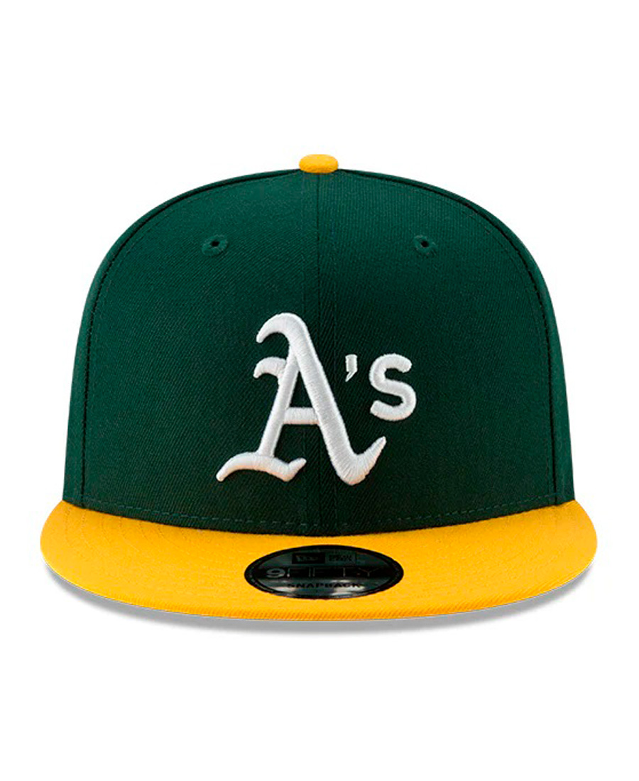 Cap New Era 9Fifty Oakland Athletics MLB – SEASONAL COLLECTION. Esta gorra ajustable presenta visera plana rígida en vibrante color amarillo dorado que contrasta perfectamente con la corona verde construcción de corona estructurada en verde característico de los Athletics que mantiene la forma profesional logo A’s bordado en blanco sobre la parte frontal con detalles precisos que replican el diseño oficial del equipo botón superior en verde que complementa la combinación bicolor distintiva interior con banda antitranspirante para comodidad durante uso prolongado y sistema de ajuste snapback trasero con botones a presión que permite fit personalizado desde 54cm hasta 62cm. La colección «Seasonal» resalta la legendaria combinación verde y amarillo que ha definido la identidad visual de los Oakland Athletics desde su llegada a California en 1968.