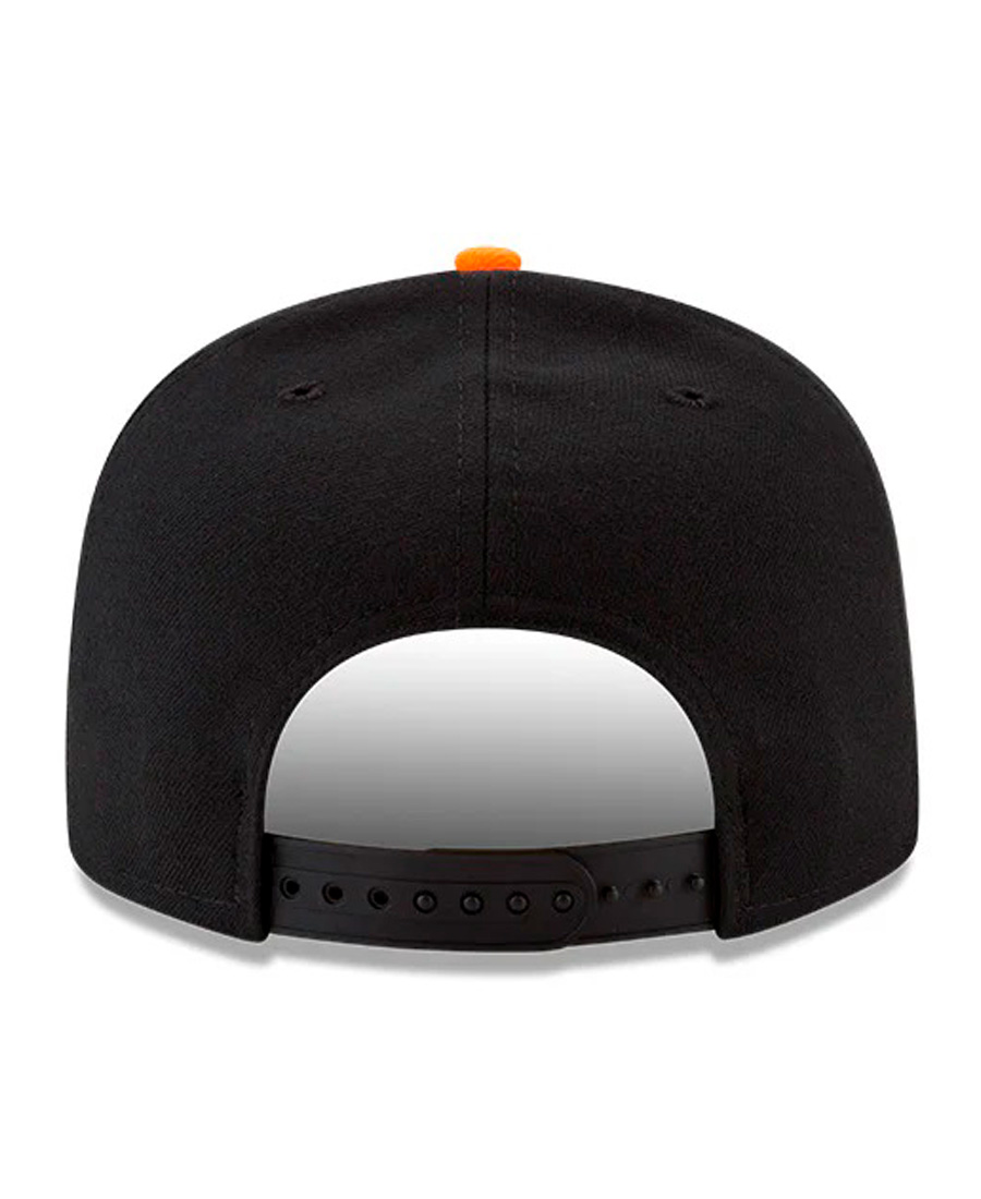 Cap New Era 9Fifty San Francisco Giants – MLB – Seasonal Collection. Esta gorra ajustable presenta visera plana rígida en negro mate que aporta un estilo urbano contemporáneo construcción de corona estructurada que mantiene la forma profesional durante uso prolongado logo SF bordado en vibrante color naranja en la parte frontal con detalles precisos que replican el diseño oficial de la franquicia botón superior naranja que añade un acento cromático distintivo interior con banda antitranspirante para comodidad durante todo el día y sistema de ajuste snapback trasero con botones a presión que permite fit personalizado desde 54cm hasta 62cm. La colección «Seasonal» presenta combinaciones de colores alternativas que permiten a los fanáticos expresar su lealtad al equipo con opciones estéticas más versátiles para diferentes temporadas y ocasiones.