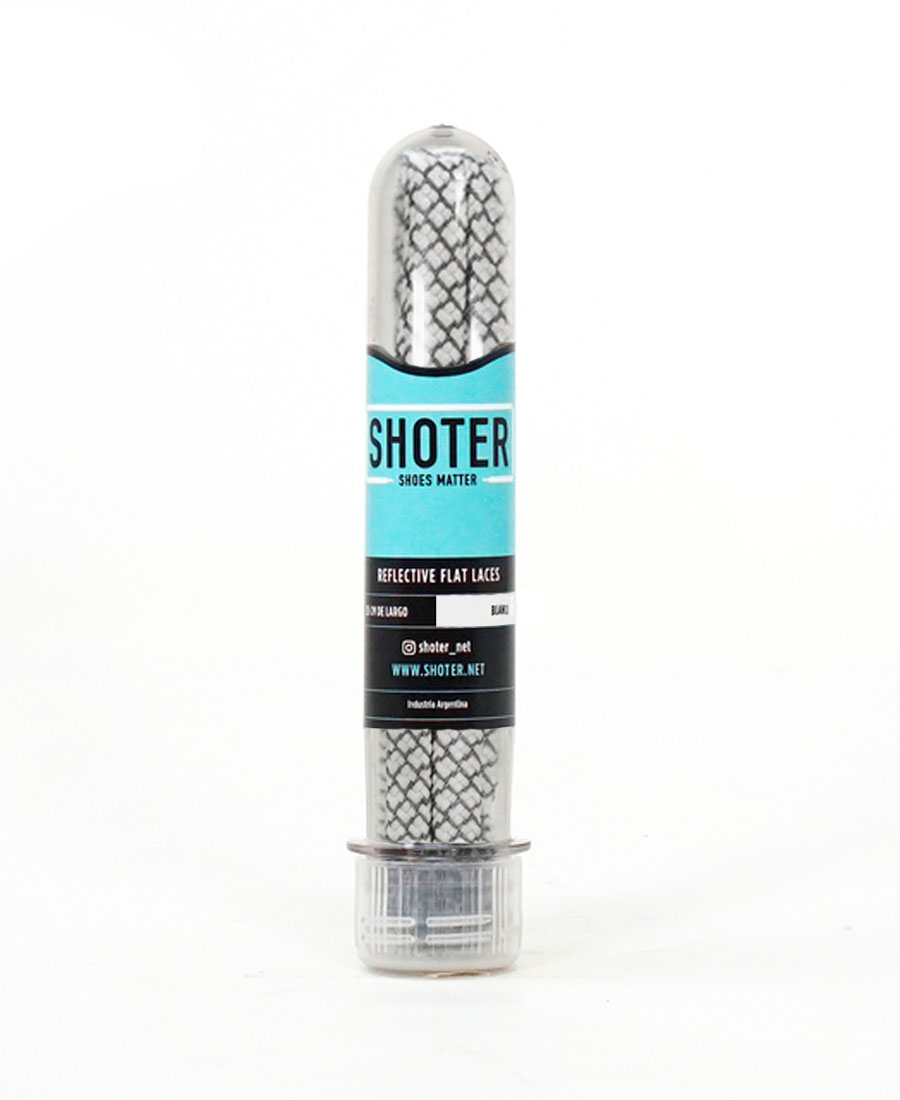 CordonesShoter Flat Reflex. Los FLAT REFLEX LACES son cordones de alta calidad reforzados y con propiedades antideslizantes diseñados para ofrecer un ajuste seguro y cómodo. Su característica más destacada es que brillan y reflejan cuando se les da luz lo que los convierte en la opción ideal para quienes entrenan en condiciones de poca luz o para quienes buscan destacar su estilo en la oscuridad. Aptos para todo tipo de calzado son especialmente útiles para deportistas y amantes del calzado que valoran tanto la funcionalidad como la seguridad.
