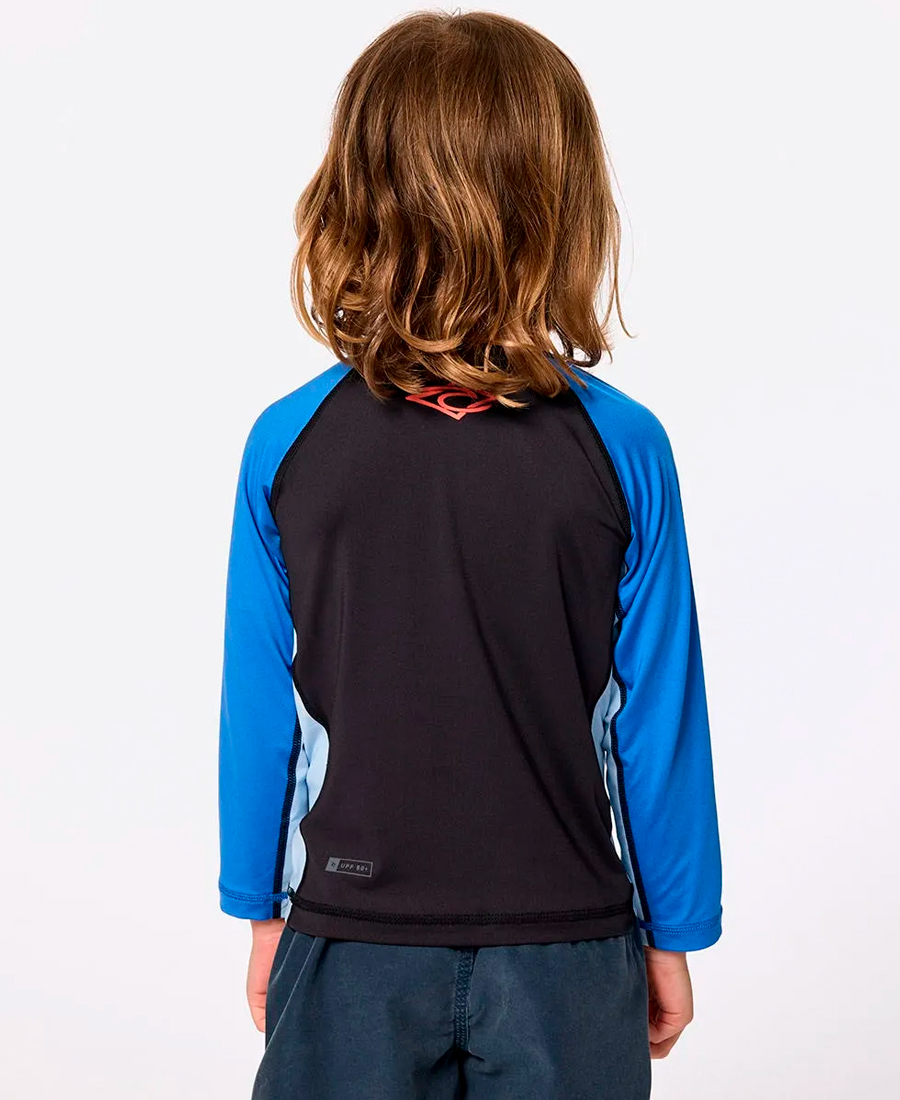 Lycra Rip Curl Wave Dayz UV+50.MICROFIBRA UV+50. PERFORMANCE FIT. UPF UV+50. Estmpa Frente + Espalda. Costura Flatlock. 91% poliéster 9% elastano.