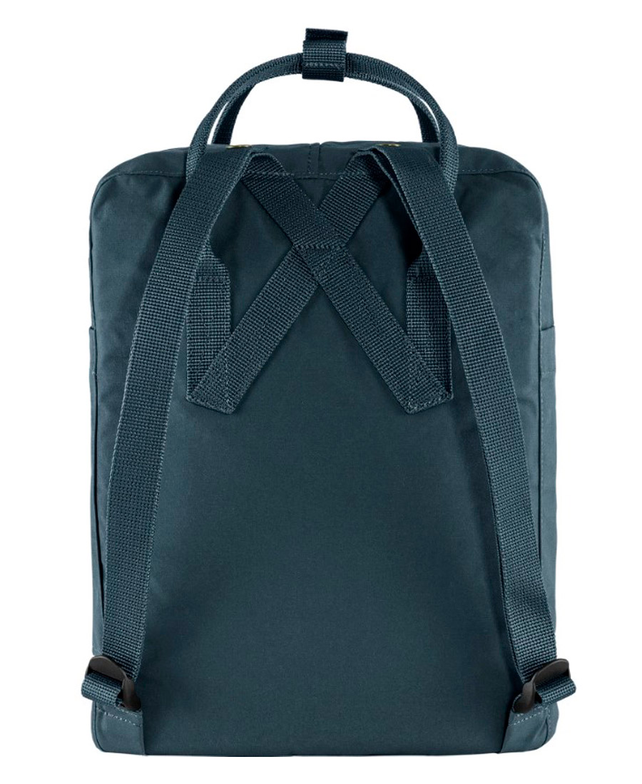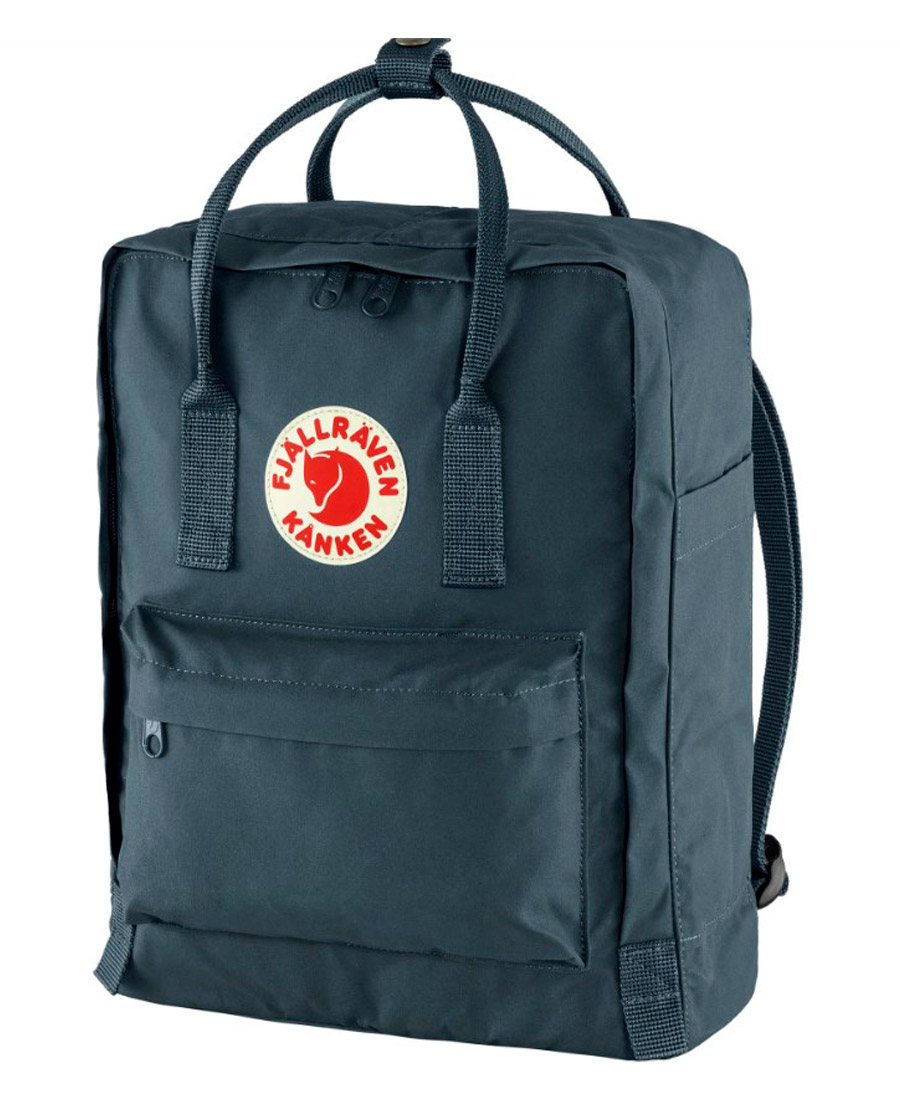 Mochila Fjalraven Kanken con capacidad 16 litros de material vinilal repelente al agua. Logo reflectante. Bolsillo frontal con cierre. Bolsillo interior para laptop (13-14 pulgadas). Correas regulables. Bolsillos solapa laterales. Agarraderas superiores.