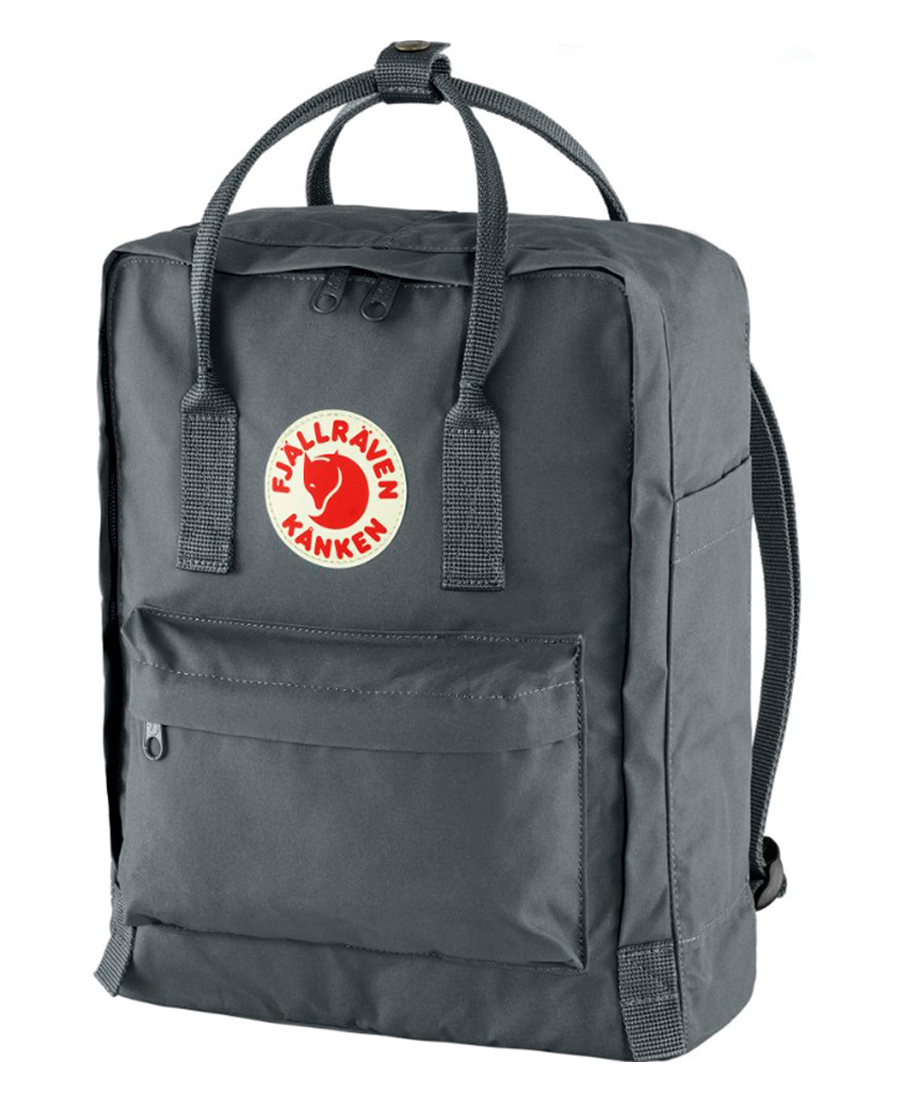 Mochila Fjalraven Kanken con capacidad 16 litros de material vinilal repelente al agua. Logo reflectante. Bolsillo frontal con cierre. Bolsillo interior para laptop (13-14 pulgadas). Correas regulables. Bolsillos solapa laterales. Agarraderas superiores.