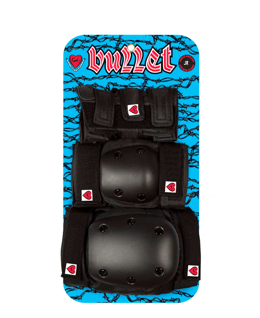 Set triple de protecciones para ñiños Bullet. Incluye rodillera codera y muñequera.