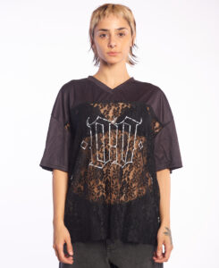 Remera Isabel La Catolica Futbol Lace. Remera loose. Escote V. Estampa digital en delantero. Tela encaje y jersey set.