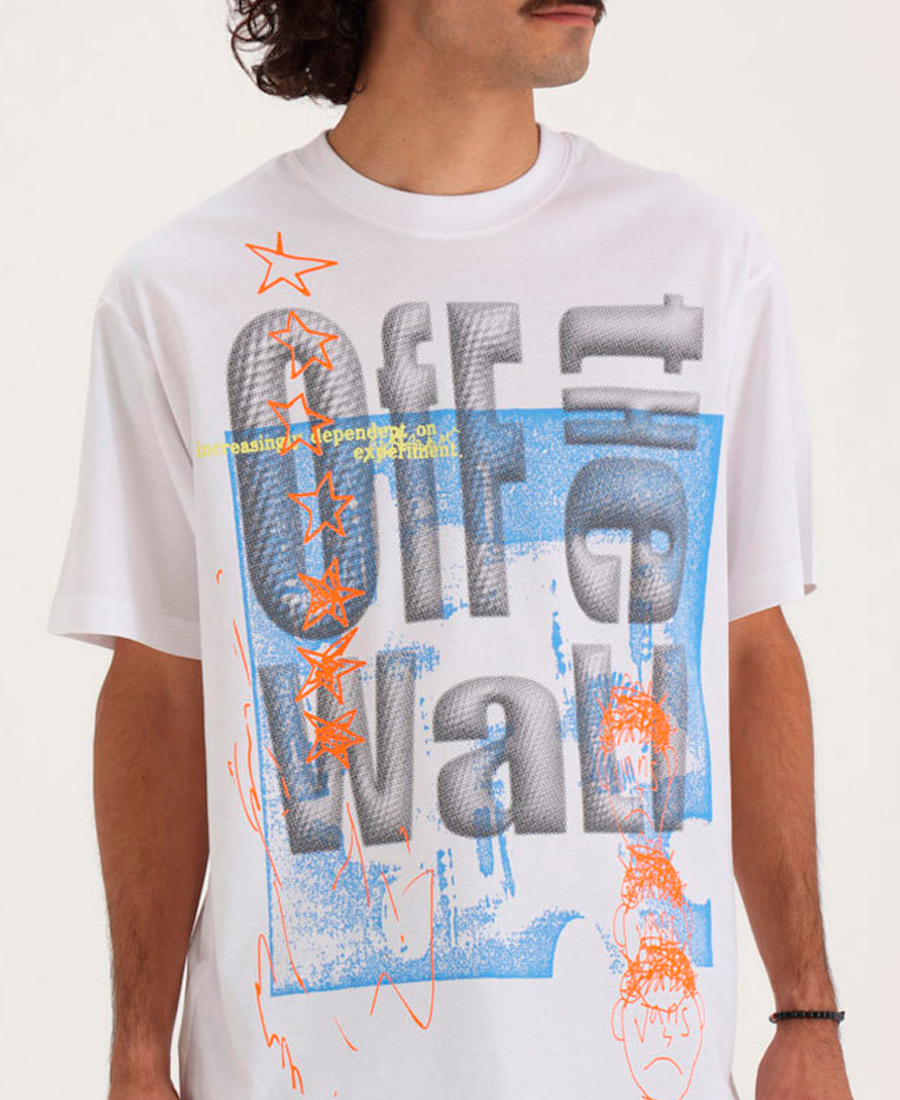 - Su diseño de manga corta suma un gráfico frontal en capas que reinterpreta la tipografía icónica de la marca con un enfoque visual contemporáneo, ideal para completar un look urbano con identidad propia.