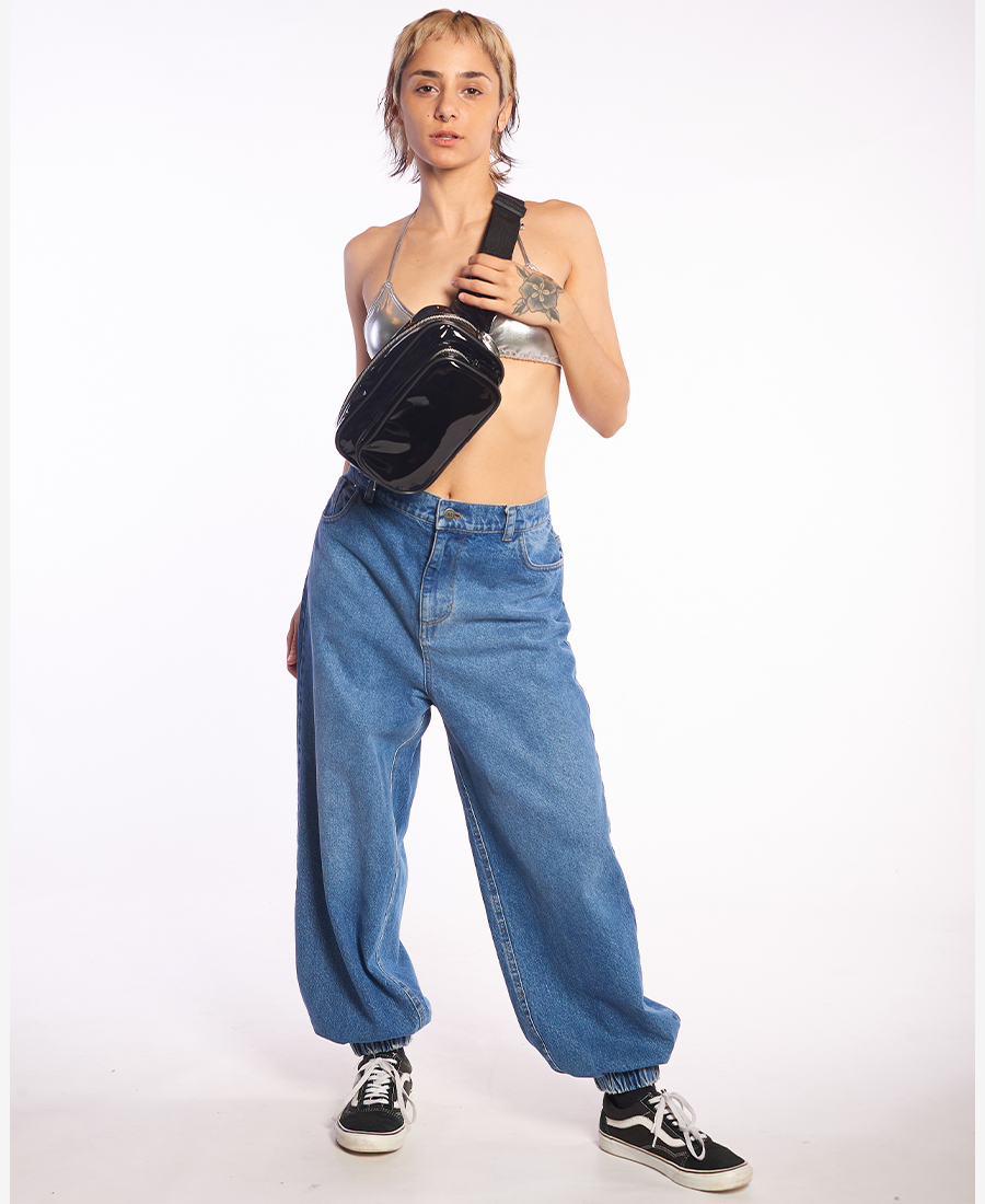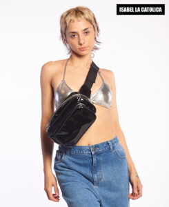 Riñonera Isabel La Católica Charol. Doble cierre. Correa ajustable.