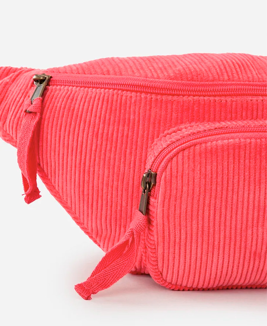 Riñonera Rip Curl Icons Cord.PANA DE ALGODÓN. Cierre con cremallera. Alto: 150 mm Ancho: 280 mm Profundidad: 90 mm. Cinta de algodón. Cierre trasero con clip de plástico. Cierre con cremallera. Etiqueta tejida con bandera.