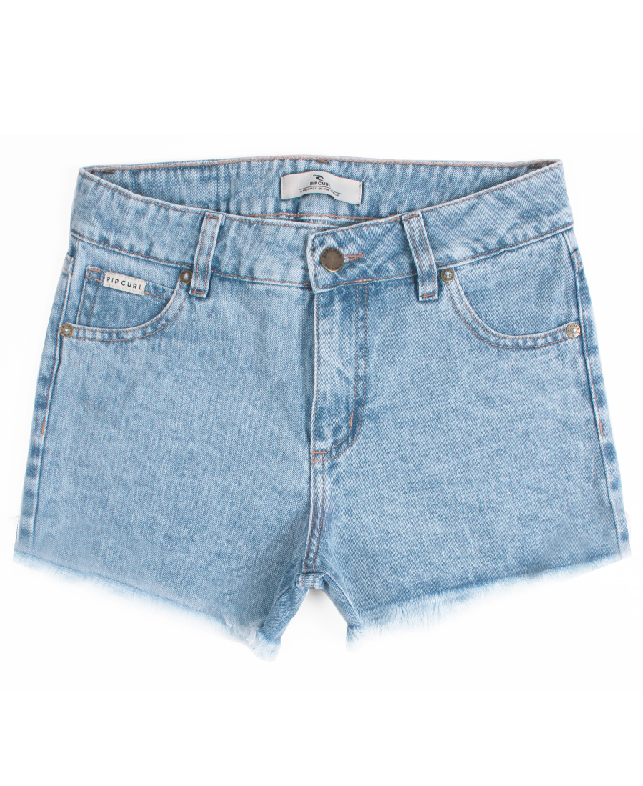 Short Rip Curl Blue FrayedDENIM STRECH • Calce relax • Lavado localizado • Bajos deflecados • Laterales rebatidos • Remaches oro • Multitags 100% algodón