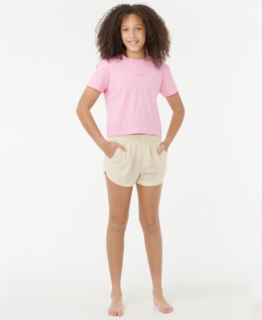 Short Rip Curl Crepe Classic. COTTON CREPE POPLIN 130G. Standard fit. Largo 3”. Cintura elastizada. Etiqueta tejida en bolsillo trasero. 100% Algodón.