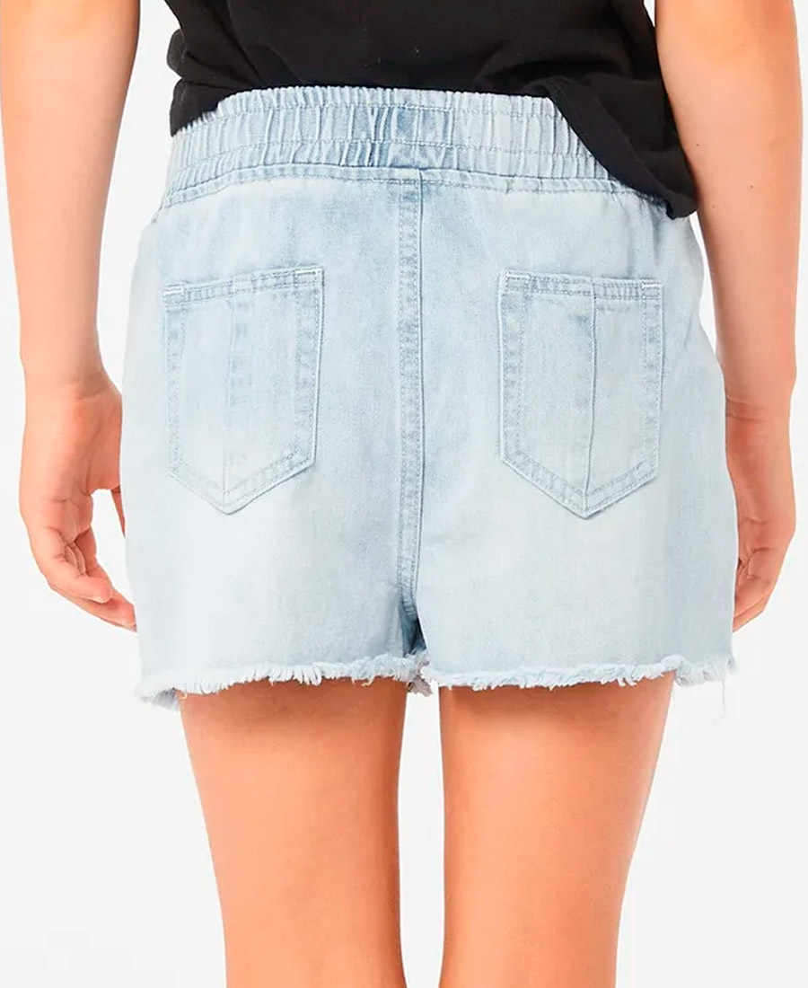 Short Rip Curl Tara. 88/8/4 10oz COTTON DENIM. STANDARD FIT. Cintura elastizada con cordon. Stone Wash vintage. Multiples bolsillos. Multietiquetas. 88% Algodon 8% poli 4% strech.
