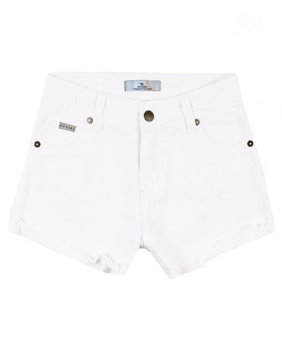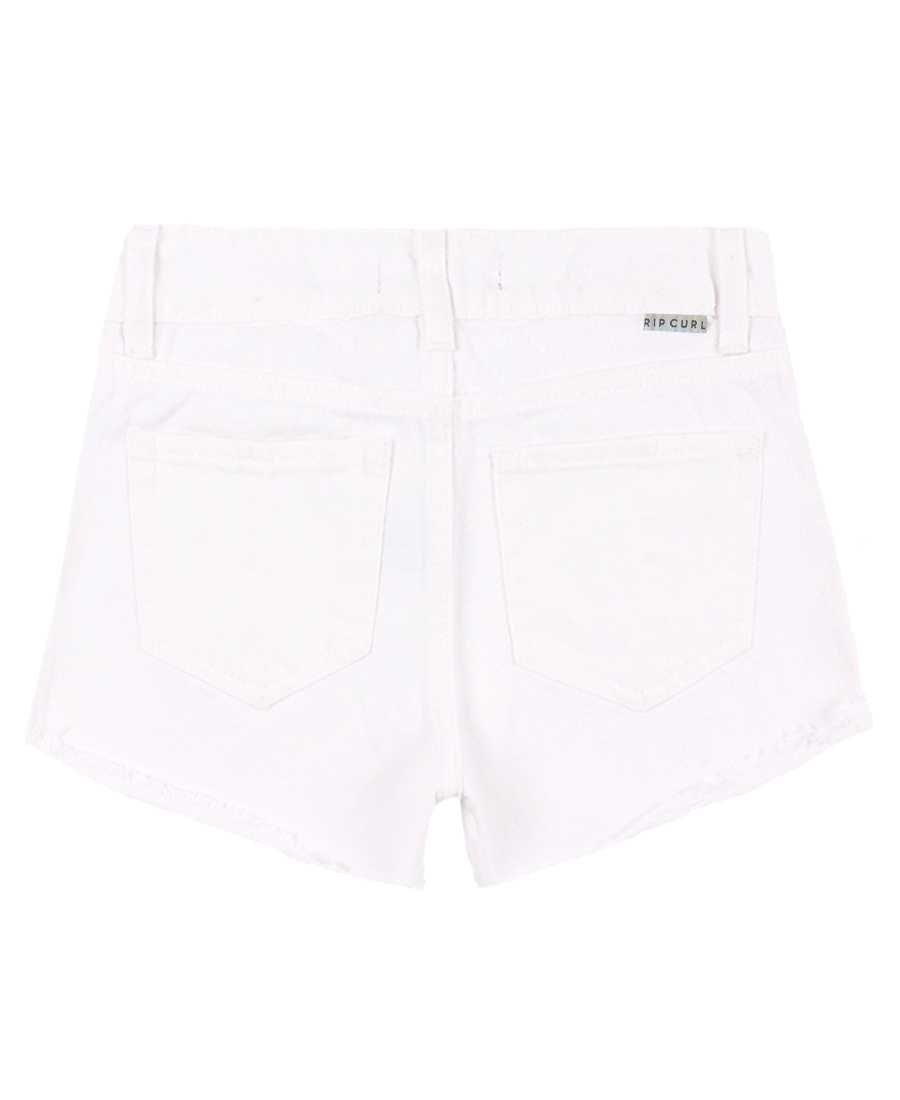 ShortRip Curl White FrayedDENIM RÍGIDO • Relaxed fit • Ruedos deflecados • Laterales rebatidos • Suavizado • Remaches negros • Multietiquetas 100% algodón