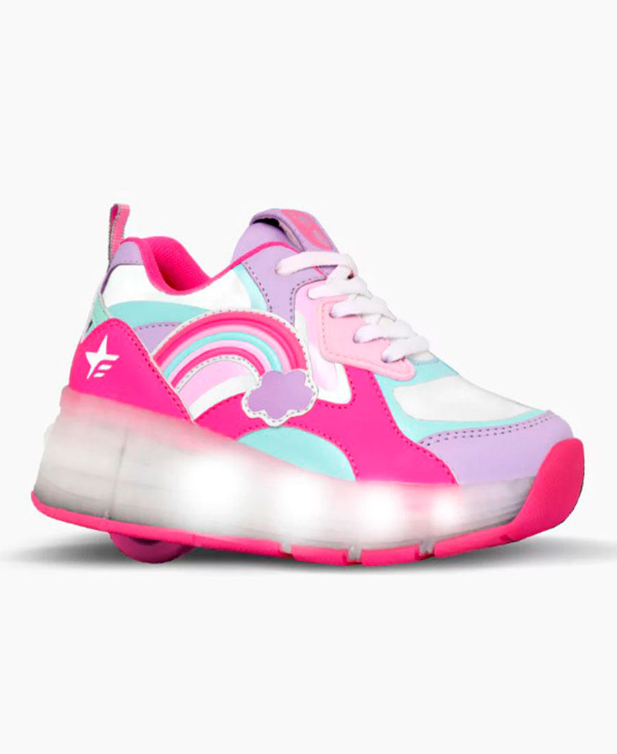 Zapatillas Footy Arcoiris. Modelo de rueda con luces led recargables capellada confeccionadas con materiales textiles y sintéticos.