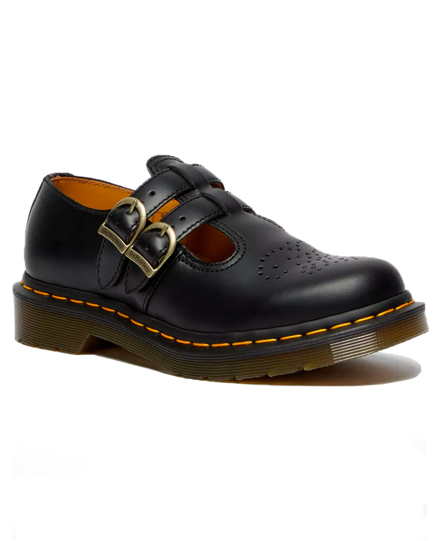 Zapatos Dr Martens Mary Jane Smooth son la quintaesencia del look escolar femenino reinterpretado con el estilo de Dr. Martens. Un modelo tan clásico como actual gracias a los detalles de perforaciones y la tira doble con hebilla de herradura.Estilo clásico de las Merceditas.Dos correas ajustables con hebilla. Retiene todos los elementos característicos del ADN de Dr. Martens desde la suela con surcos laterales al pespunte amarillo. Confeccionado sobre la cómoda y emblemática suela con cámara de aire de Dr. Martens antideslizante muy resistente a la abrasión al aceite y a la grasa.