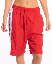 Bermuda Starter Baggy 23". TASLOM. 100% NYLON. LOOSE FIT 23”. Estampa de marca/talle. Estampa en laterales, y logo en el frente. Vivo en unión de laterales a contratono. Tira rayada en el recorrido del ruedo. Ojalillos metálicos negros. Cordón negro de poliester. Grifa de marca. Bolsilllos laterales. Bolsillo izquierdo con cierre.