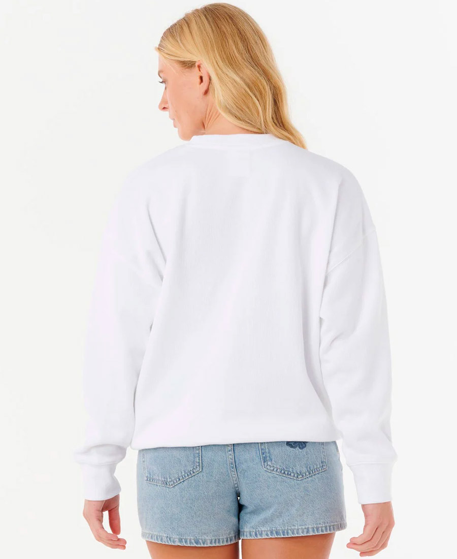 Buzo Rip Curl Crew RLX Tour. Liviano. Relaxed fit. Lavado Enzimatico fuerte. Limpieza de escote en cinta hilera. Estampa Frente. Multietiquetas. 100% algodón.