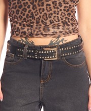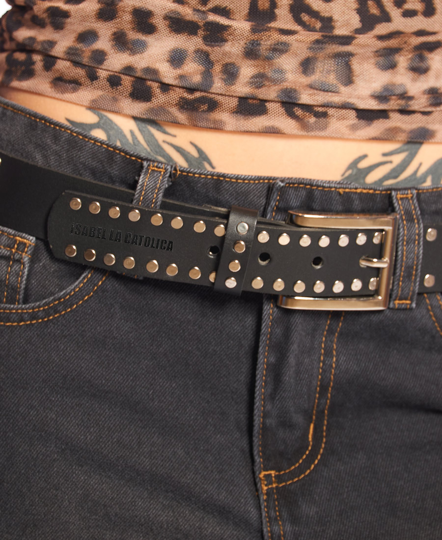 Cinturón Isabel La Católica Goth. 100% PU. Cuero flex con tachas y hebilla metalica plateada. Pase de 4 cm.