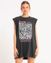 Vestido Rusty Vacation Days. Tejido: Jersey procesado. Composición: 100% Algodón. Calce: Oversize fit. Detalles: Vestido muscle con efecto lavado de desgaste, estampa delantero y logo espalda. Etiqueta tejida de marca. Origen: Nacional.