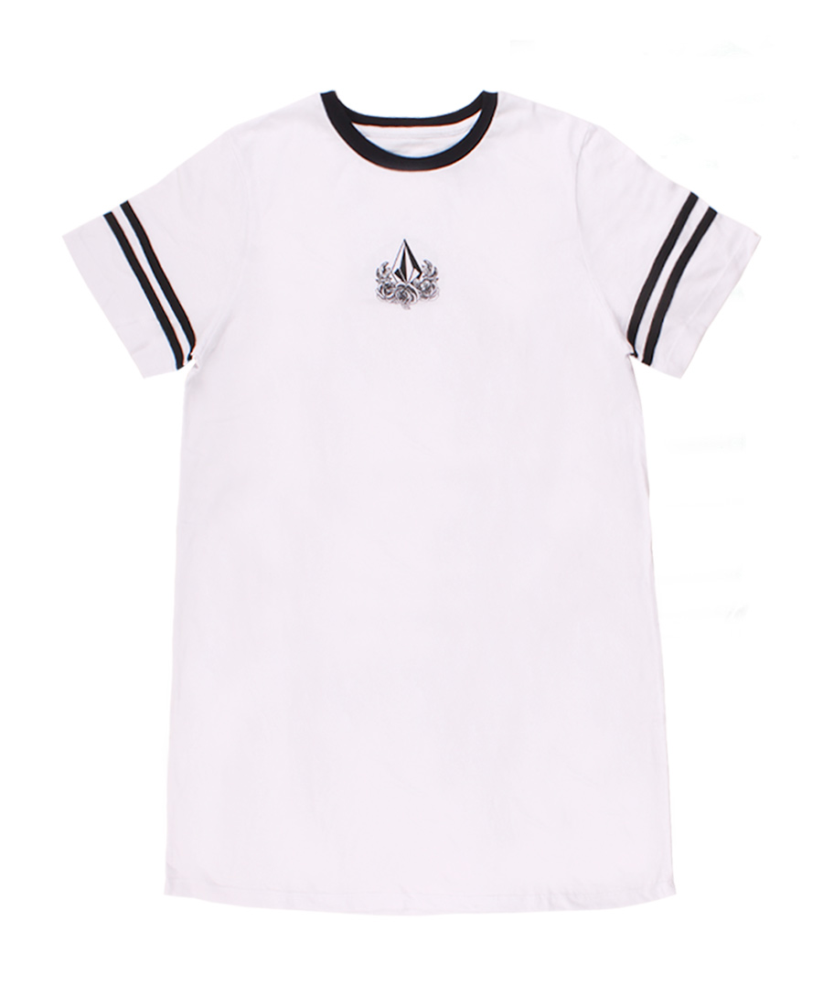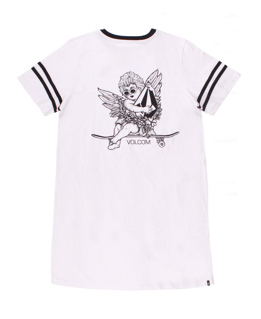Vestido Volcom American. Loose Fit. Vestido manga corta con vivo a contratono. Estampa en frente y espalda. Etiqueta de talle estampada. Grifa Stone en espalda. Jersey / 100% algodón.