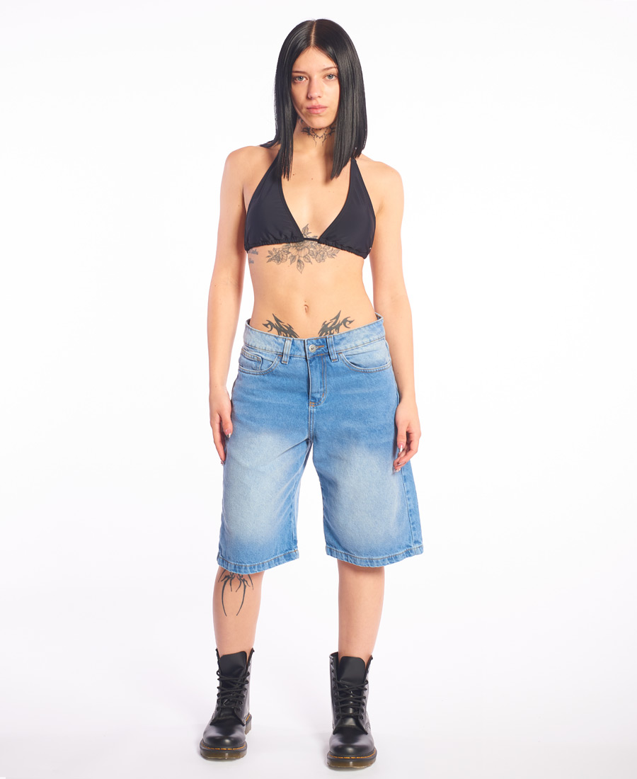 Bermuda denim low rise lavado. Denim 100% algodón.