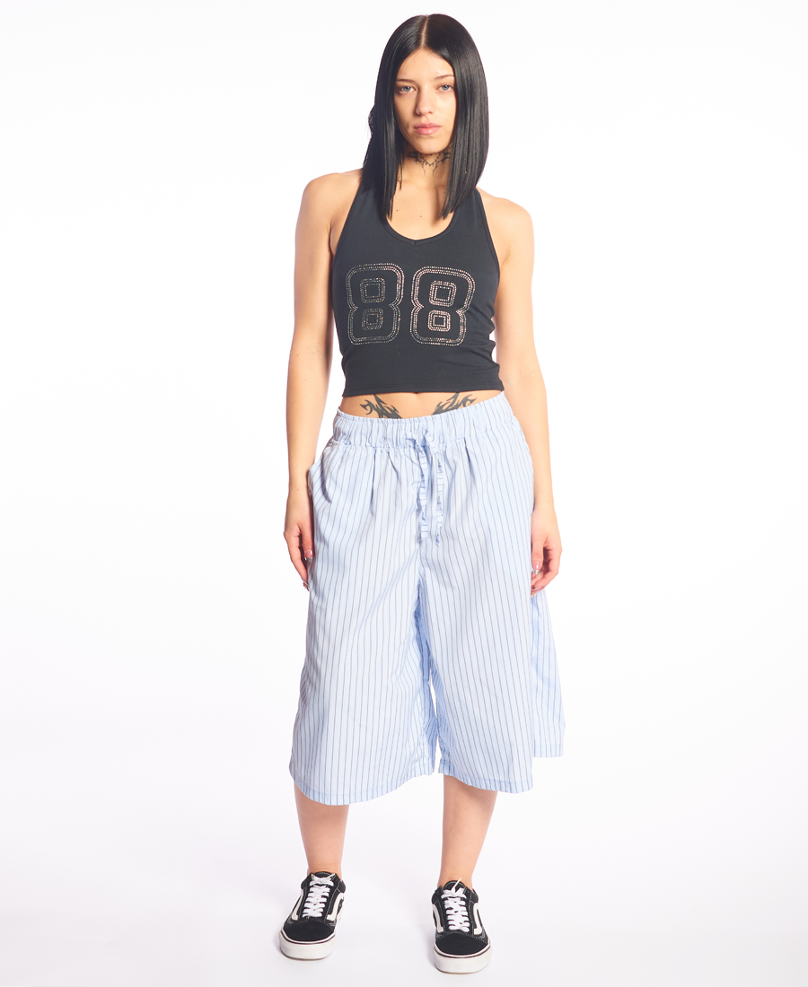 Bermuda Isabel La Catolica Low Wide Poplin. Poplin 70% poliester 30% algodon. WIDE FIT. Etiqueta de Marca/talle. Cintura elastizada. Cordon tela base. Low rise. Etiqueta de marca.