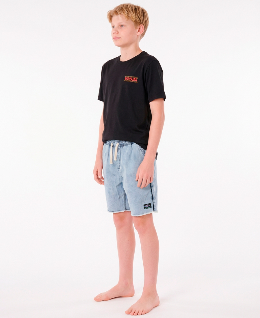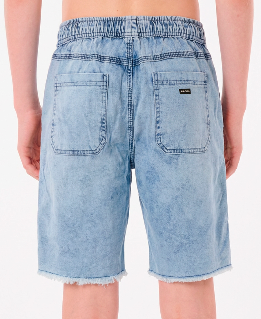 Bermuda Rip Curl New Orbit 16". DENIM CAMISERO. RELAXED FIT. Lavado Stone Wash. 16 Pulgadas. Cintura Elastizada. Etiqueta Tejida. Ruedos al Corte. 100% algodon.