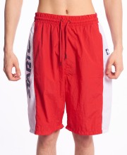 Bermuda Starter Baggy 23". TASLOM. 100% NYLON. LOOSE FIT 23”. Estampa de marca/talle. Estampa en laterales, y logo en el frente. Vivo en unión de laterales a contratono. Tira rayada en el recorrido del ruedo. Ojalillos metálicos negros. Cordón negro de poliester. Grifa de marca. Bolsilllos laterales. Bolsillo izquierdo con cierre.