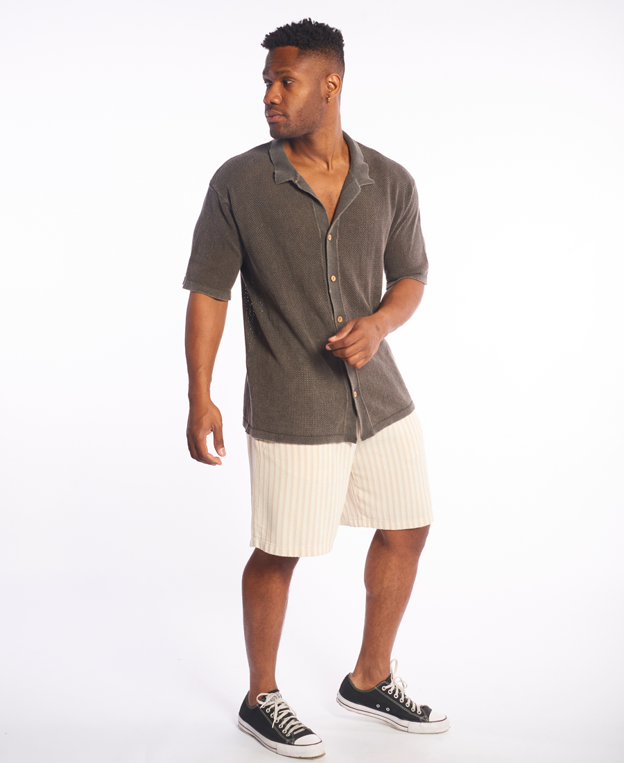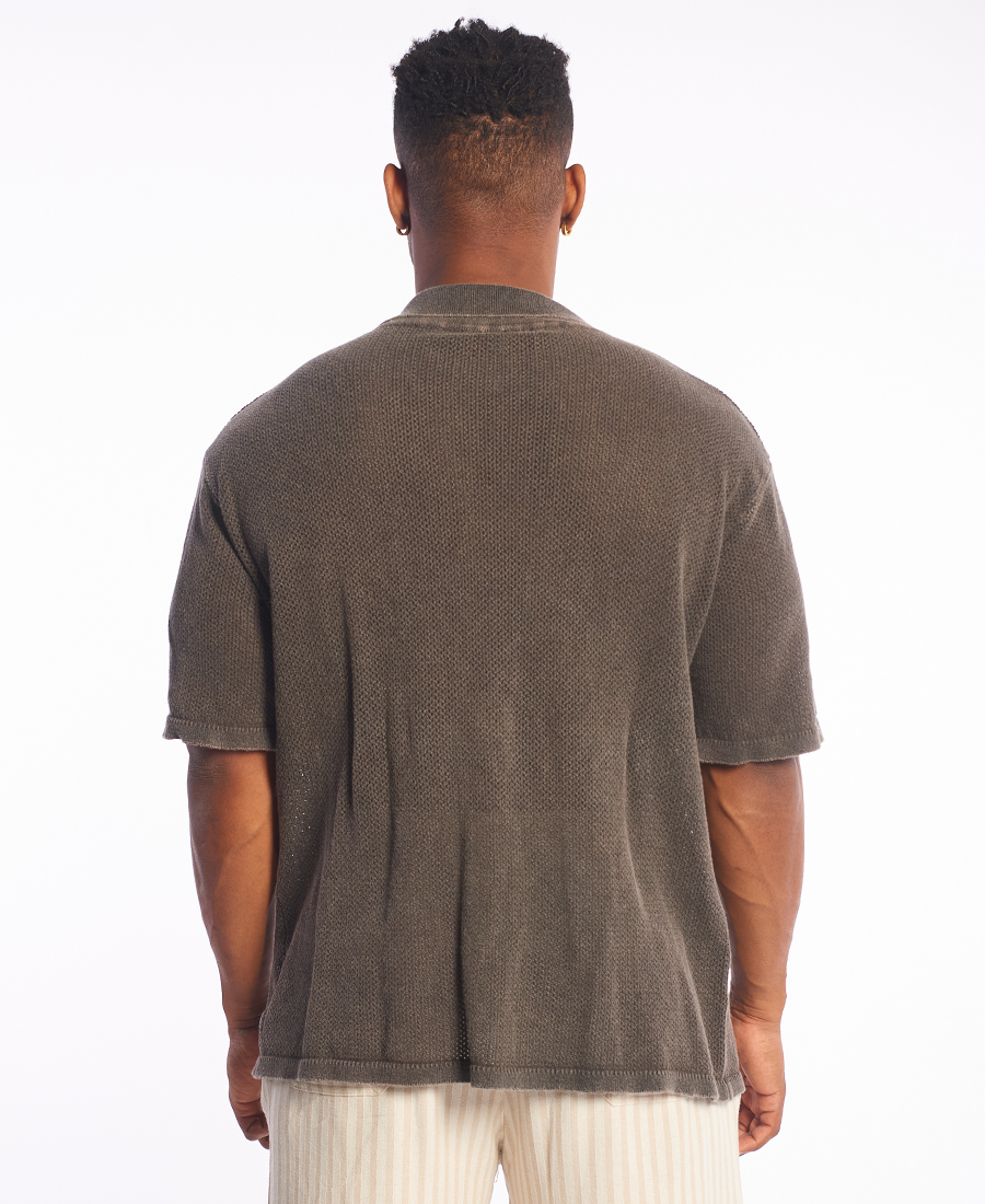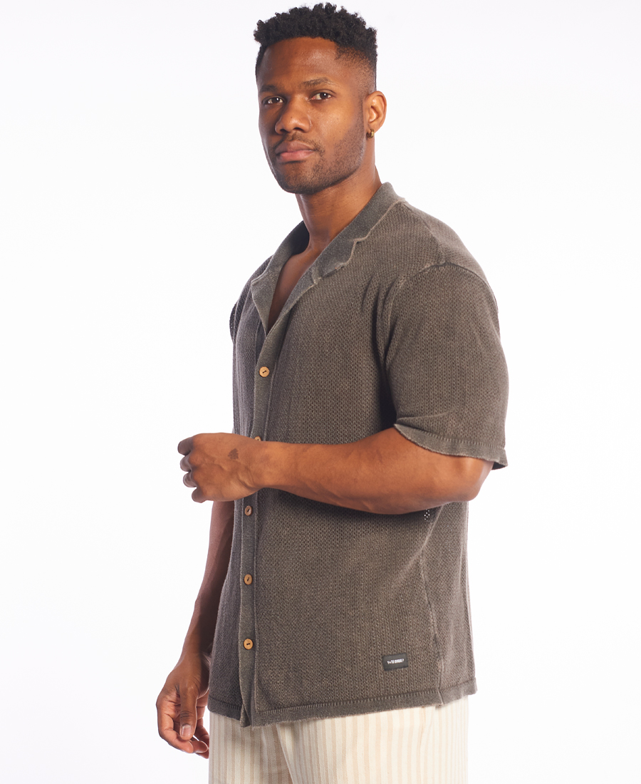 Camisa Y Tu Quique? Hawaii Tejido. TEJIDO punto ballenero 100% algodón. Cuello y puños punto combinación. Teñido corrosion. Galga 12. Etiqueta de marca. Camisa regular.