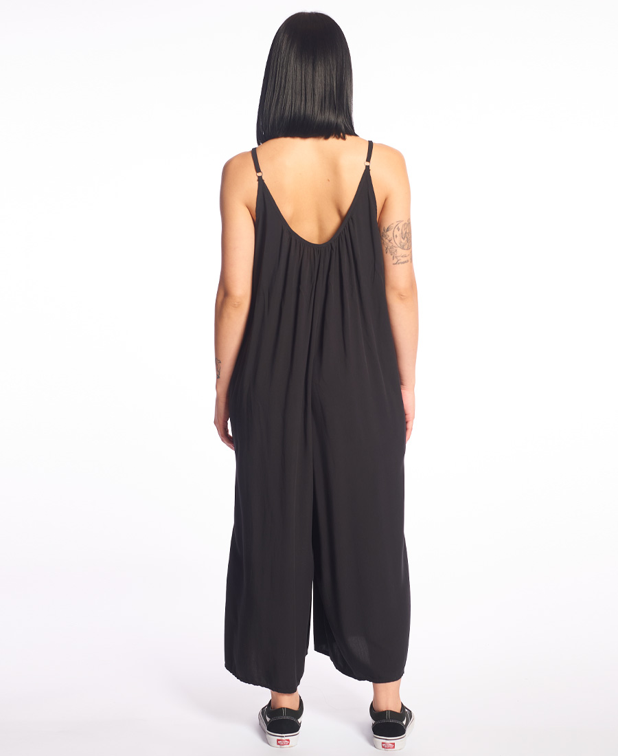 Jumpsuit Isabel La Católica Oversize BLK. FIBRANA 100% Rayon. WIDE FIT. Etiqueta Marca/talle. Hilo Negro. Grifa de marca.