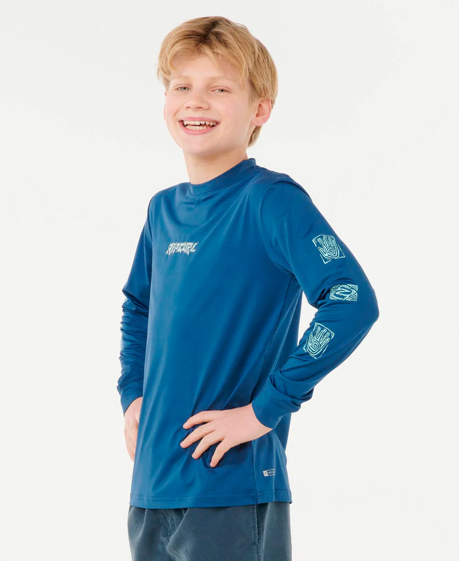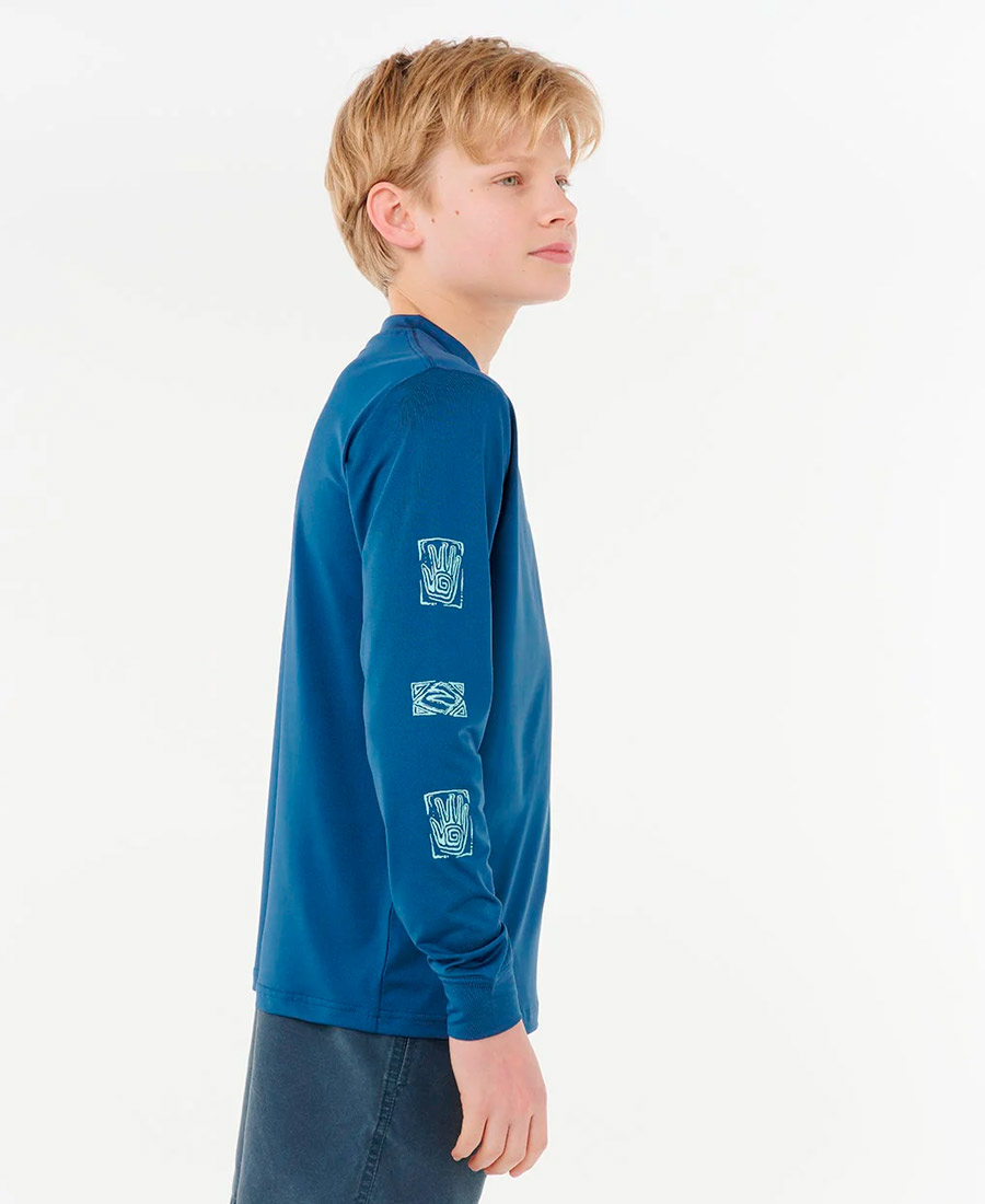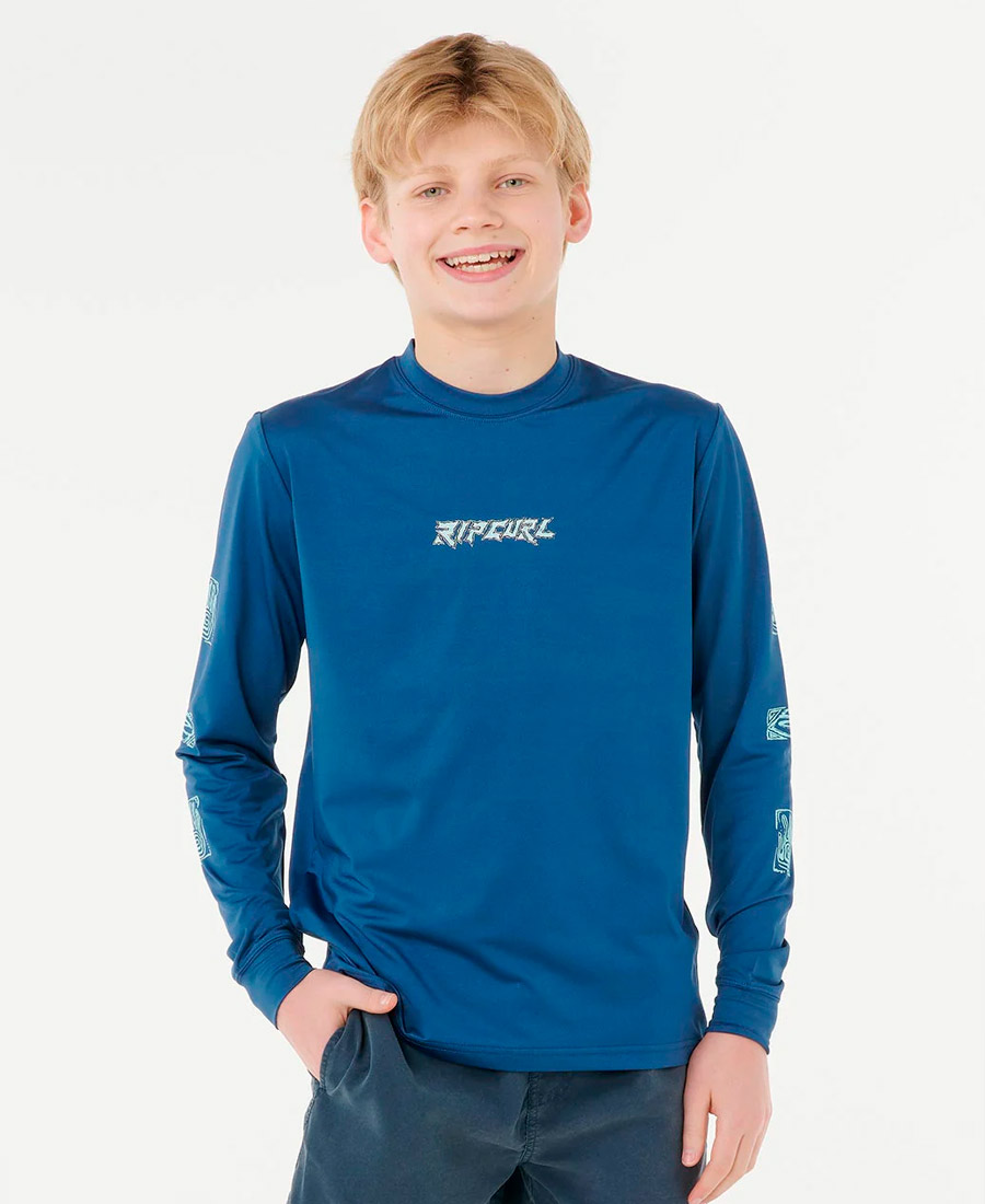 Lycra Rip Curl RLX Tropic Daze UV50. STRETCH RECYCLED POLYESTER 180 G. LOOSE FIT. UPF 50+UV Proteccion solar. Transfer. Estampa Frente + Manga. Resistente al cloro.