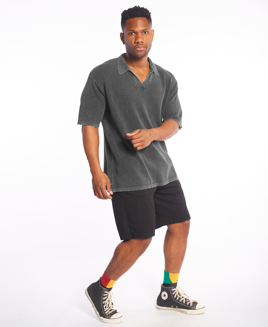 Polo Y Tu Quique? Tejido. TEJIDO punto ballenero 100% algodón. Cuello y puños punto combinación. Teñido corrosión. Galga 12. Etiqueta de marca. Polo regular.