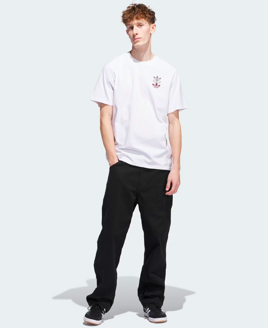 Remera Adidas Triple Trifolio. Ajuste clásico. La remera adidas de skateboarding que ofrece una versión moderna de la herencia de las 3 Tiras con una confección de cuello redondo de algodón con corte clásico y una comodidad transpirable para la práctica del skateboarding. 100 % algodón.